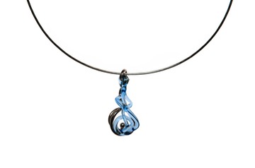 Light Cobalt glass with .980 silver spiral. Sterling silver chain.